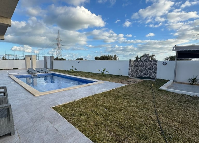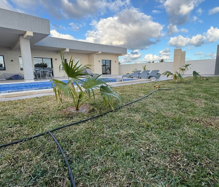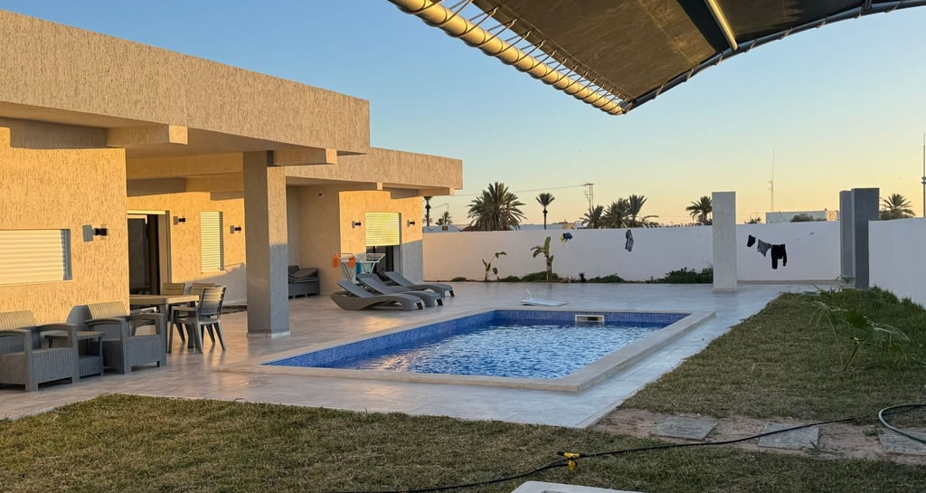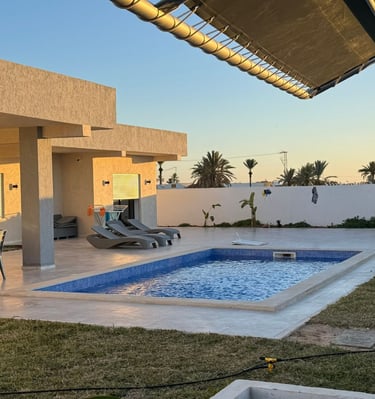 Nichée au cœur de Djerba, notre villa allie architecture traditionnelle tunisienne et luxe moderne. Découvrez l'alliance parfaite du charme méditerranéen et du confort contemporain.